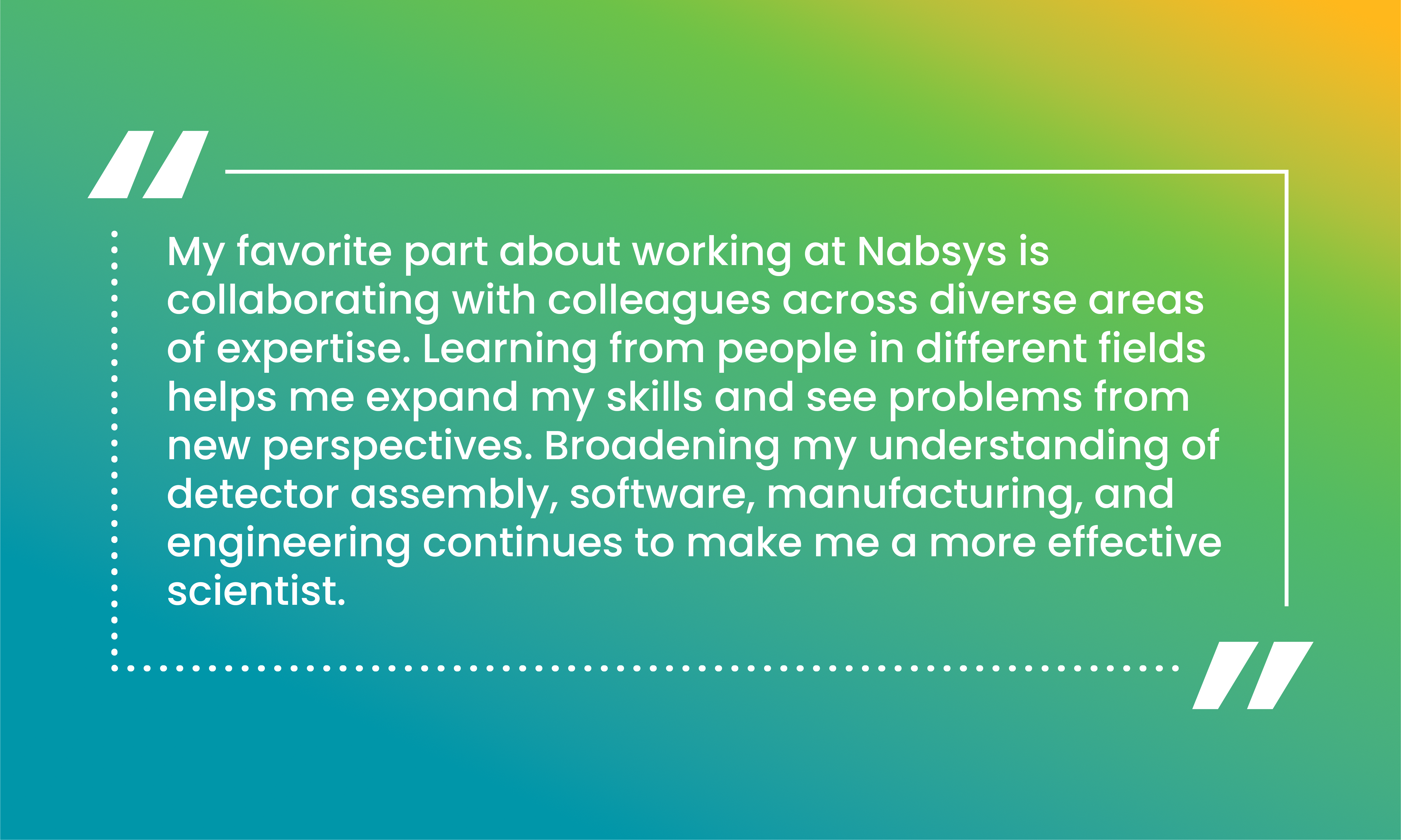 Her sense of purpose is part of what makes her a Nabster Hero. The same determination that helps her train for her next marathon also shapes her contributions to detector development and the impact our technology can have for researchers.
