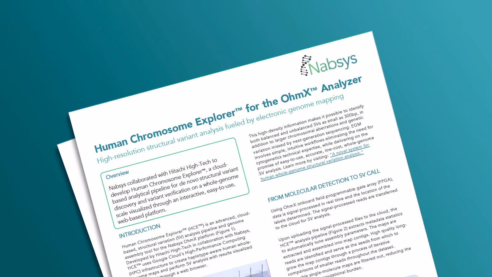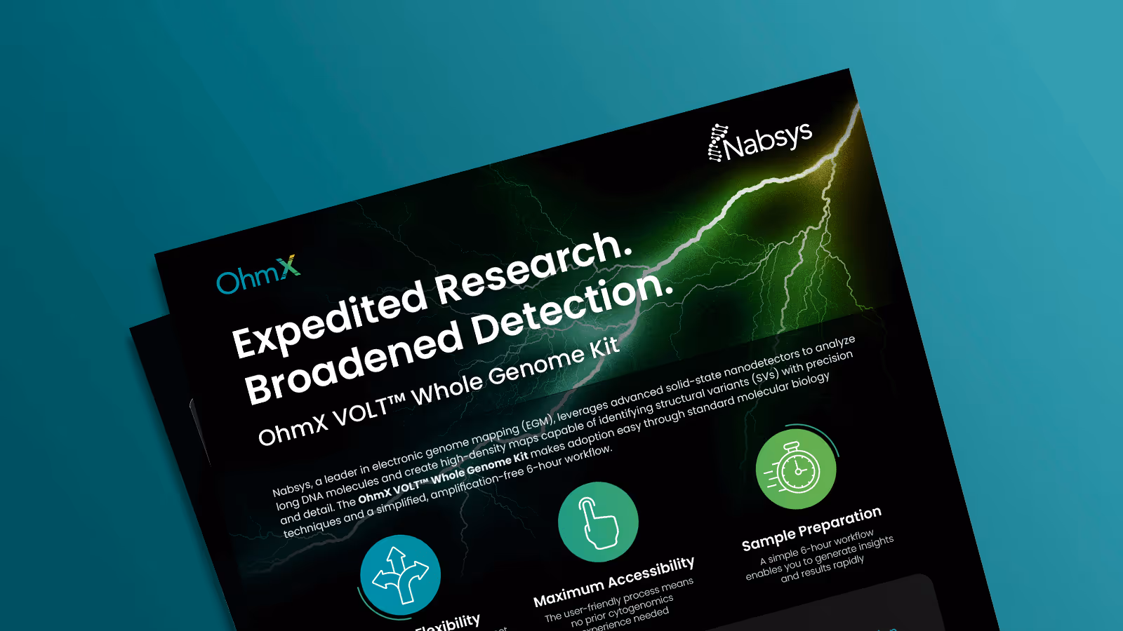 The state-of-the-art OhmX Platform uses electronic nano-detectors to deliver the highest resolution for whole genome structural variant analysis. You can now perform whole genome analysis of SVs down to 300bp in size—enabling insights into previously undetectable DNA variations.